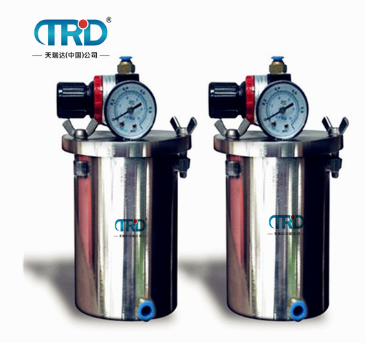 除開挑選點膠壓力桶的材質,容積也是要考慮到的,估算下每日要應用的膠水量,隨后挑選符合規定的點膠壓力桶。