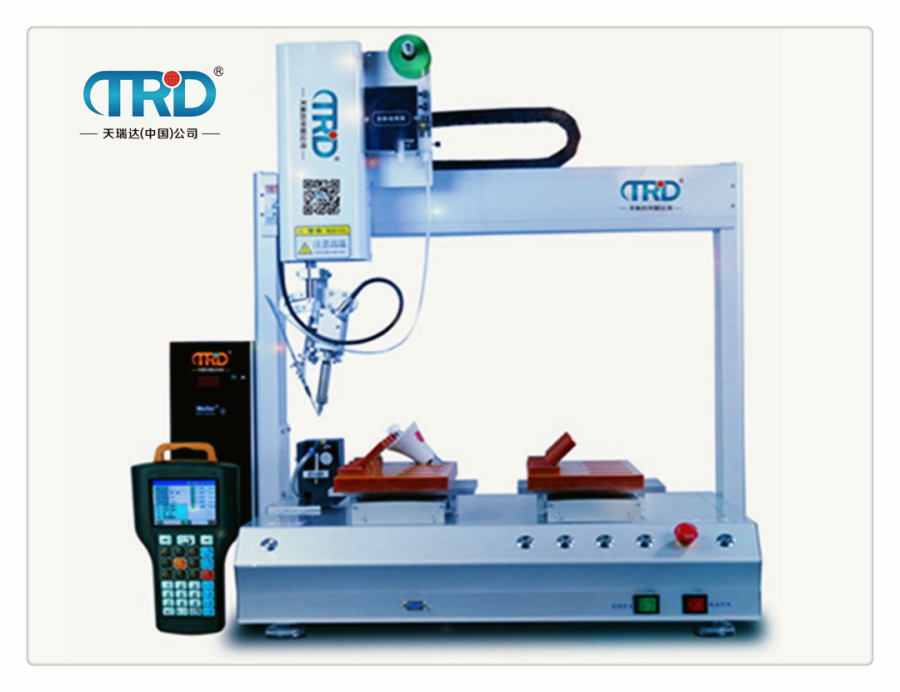 TH-5331H四軸雙平臺自動焊錫機可對各種工件進行高速拖焊,點焊,斜線焊接等。解決了人工重復性焊接動作出現的焊點不均勻、虛焊等現象。我們的優勢是焊點一致性好,品質穩定。自動焊錫機操作簡單,生產效率高、焊接質量好、環保又節能、初學者也能達到熟練工人的焊接效果。本機采用簡易快速地輸入焊錫程序,其軟件并具有強大的編輯功能,可輕易、快速的完成程序教導。