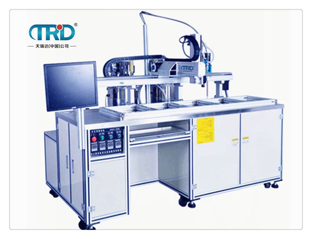 產品介紹TG-1500LF CCD自動灌膠機可對各種工件進行灌注工藝等。具有點、線、面、弧、圓及三軸聯動等功能,能適應任何不規則物件灌膠。并可以提升效率,節省人工,一臺設備可達傳統5-6個人的產量,獨有的控制系統,不受氣壓因素影響,避免出膠不均、拉絲、氣泡等現象。 產品用途 本機能適應任何不規則物件灌膠,適用于不同種類的灌注工藝。常用于LED顯示屏灌膠,LED節能燈灌膠,LED電源灌膠,LED燈條,電腦電源灌膠,繼電器模塊灌膠,傳感器灌膠,PCB板灌膠,太陽能電池板灌膠,線圈灌膠等 產品特點 ◆ 帶有CCD影像技術和電腦操作使得編程不再繁瑣,大大提高了定位精度,程序的調試和操作都變得通俗易懂,沒有任何經驗的人員只要操作一遍就能夠很快學會。 ◆ 本機可由20L原料桶直接供料。也可作原料輸送用。 ◆ 采用容積計量式往復泵,可進行連續吐出。 ◆ 由氣動馬達驅動,通過轉速調整吐出速度。 ◆ 中——高粘度時,需安裝加強吸盤式樣 ◆ 采用液晶屏中文操作界面,易學易懂,可儲存100組灌膠參數; ◆ 灌膠速度、灌膠時間、停膠時間皆可參數設定、出膠量穩定,不漏滴膠; ◆ 具有點、線、面、弧、圓及三軸聯動等功能,能適應任何不規則物件灌膠; ◆ 節省人工,一臺設備可達傳統5-6個人的產量;按需配比,實現邊混合邊灌膠,最大限度節約膠水; ◆ 雙料桶設計,A膠和B膠分開儲料,保證膠水長時間放置不發生固化; ◆ 獨有的控制系統,不受氣壓因素影響,避免出膠不均、拉絲、氣泡等現象; ◆ 儲料桶配有液位感應開關,缺料自動報警; ◆ 可選配膠水攪拌、加熱并抽真空脫泡功能,適用于不同種類的灌注工藝。