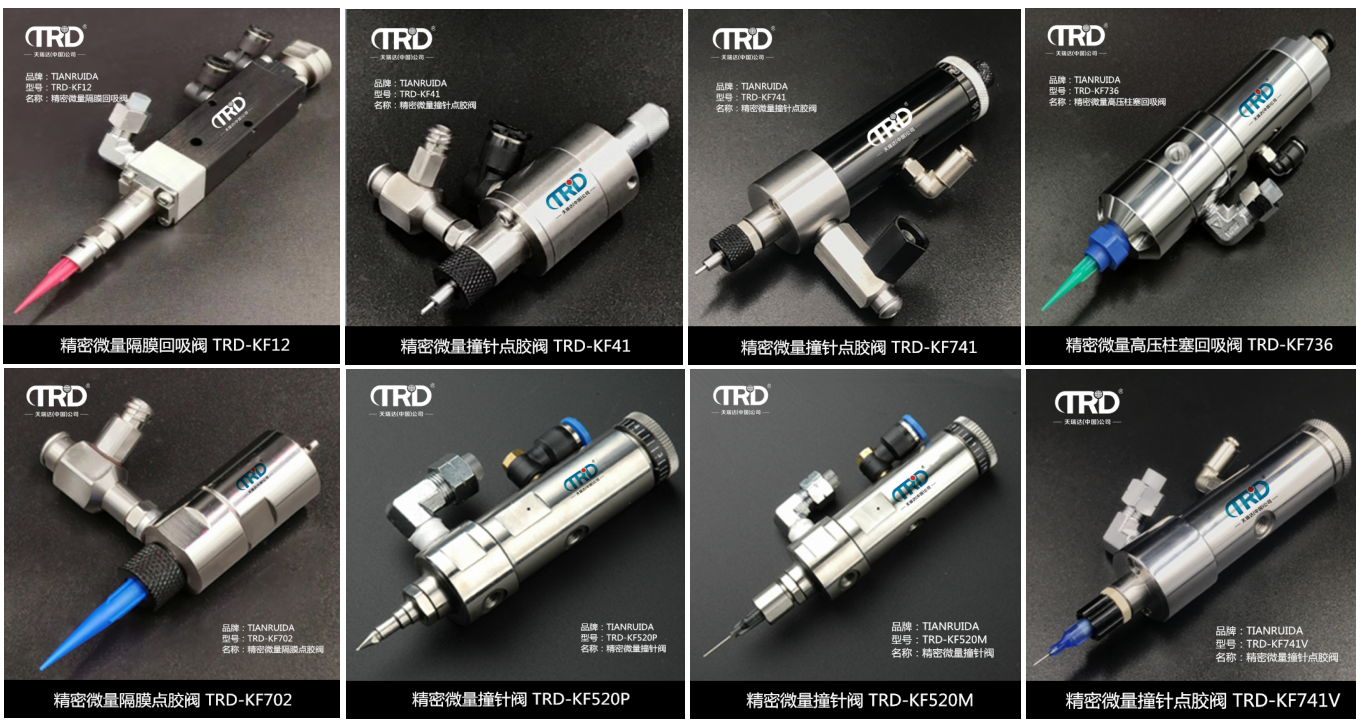 TRD-KF41精密微量撞針點膠閥比傳統撞針式的點膠閥小60%,具有零殘較量、大小一致的膠點,涂線均衡,不跑偏,涂膠精度高,點膠閥反應快速等特點,使用壽命長,適用UV膠、白乳膠、潤滑脂、油墨等單組份液體,電子行業、照明行業、汽車行業、工業電氣、太陽能光伏等行業