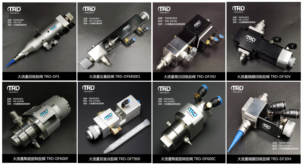 TRD-DFM001大流量定量膠閥定量閥一般用在產品裝配前,在軸,軸承,齒輪,凸輪等有摩擦副的位置進行定時、定量精確加注、涂抹油脂的一種新型閥體,具有集成度高、安裝方便、維修簡便、自動化程度高,勞動強度低、性能穩定、加注油方便等特點。廣泛用于電動玩具、電動工具、家用電器、汽車零部件等裝配生產線。由于油脂是高壓的,是普通點膠閥不可替代的。