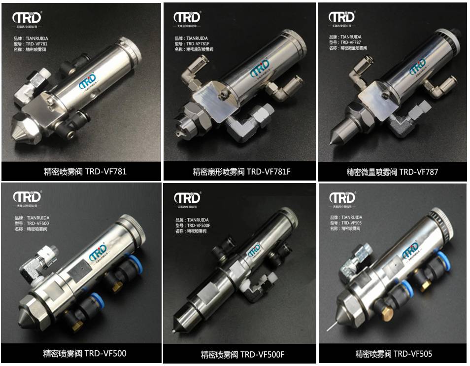 TRD-VF781精密噴霧閥用于涂覆、標記、粘接和潤滑等, 適用于許多中低粘度流體。是一種將液體變成細小的水珠,以噴霧形式排出的裝置,能夠可靠地噴涂以微升或毫升計量的流體。不堵塞,不滴液,不會變干,不會過度噴膠,不起霧,不跳躍。可代替人工特定的點膠作業,實現機械自動化的生產,高輸送效率,可極其一致的覆蓋區域。